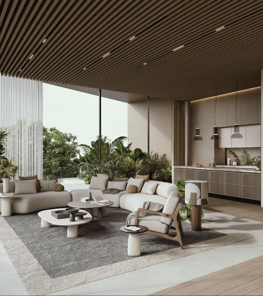 Designed by XBD Collective, the interiors of the villas are a fusion of Miami-style architecture and traditional Arabic influences. Natural materials like limestone and wood complement contemporary styles, and strategic use of natural teak wood adds warmth.