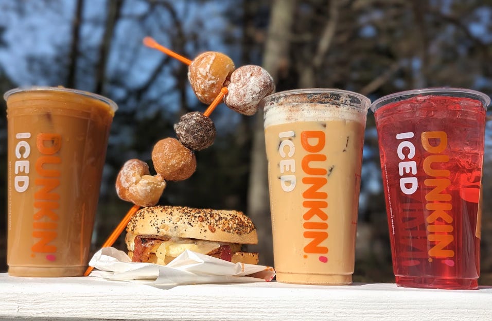 The Hazelnut Heartthrob Iced Coffee, The Crispy Munch Skewers, Everything Encore Breakfast Sandwich, DunKings Iced Coffee and Mixed Berry Beats Refresher!