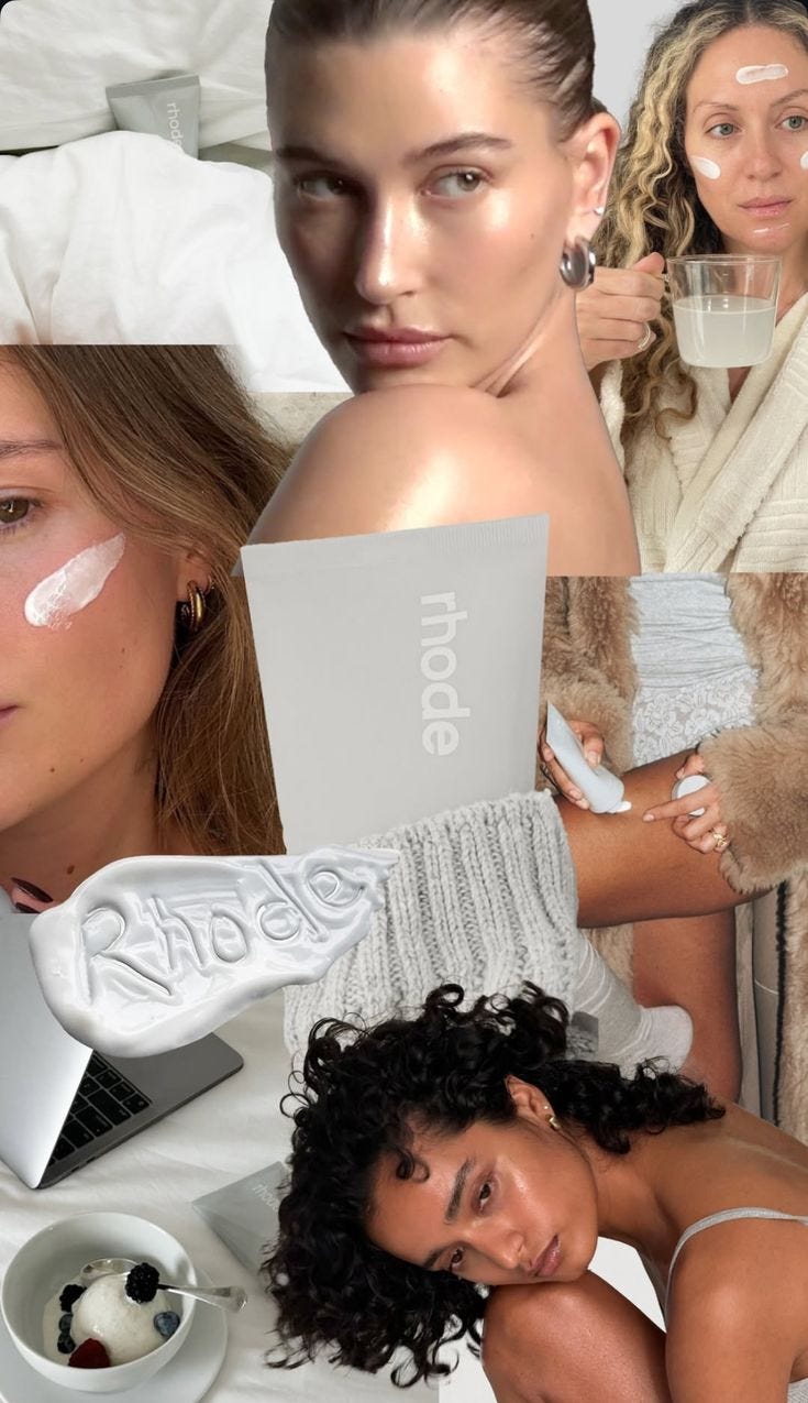 Hailey and Rhode built its empire around the “glazed donut skin” aesthetic- the idea that you should look like you accidentally fell face-first into a Krispy Kreme glazed donut but make it ultra luxury